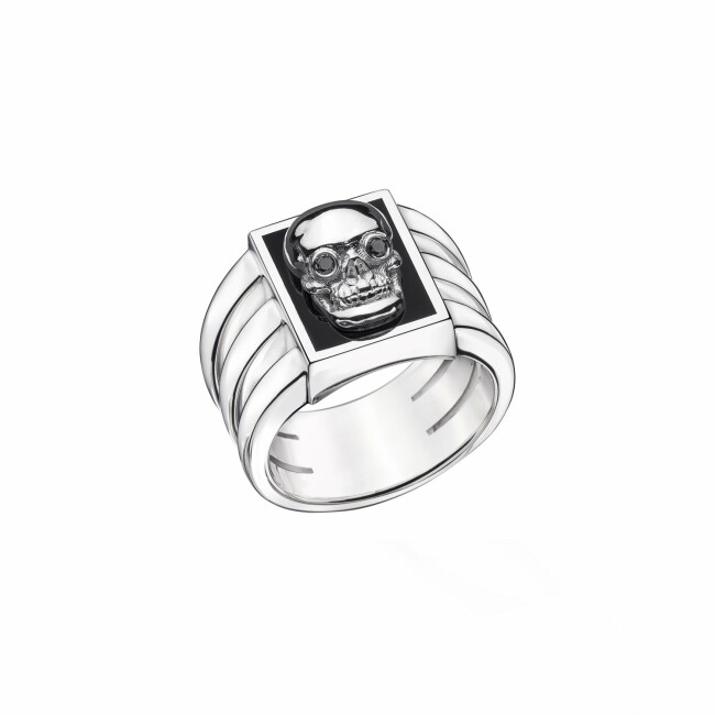 Deal d'Homme Bague Mauboussin Deal d'Homme Tête de mort en argent et diamants noirs
