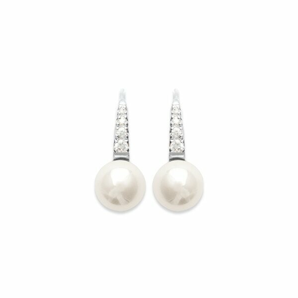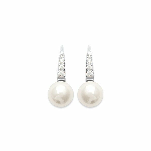 Boucles d'oreilles en argent rhodié, oxydes de zirconium et perle d'imitation